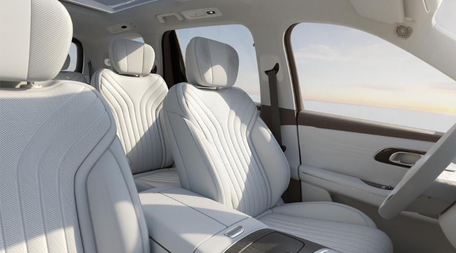 先说最让家庭用户心动的空间。银河M9车身长达5205mm,轴距超3米,车内面积达到5.2㎡,得房率更是同级最高的88.3%,相当于把“移动大平层”搬进车里。二三排纯平地板+470mm低门槛,老人不用弯腰就能轻松落座;三排座椅能150°躺倒,配合0.15㎡的“勃朗峰舷窗”,孩子长途睡觉不压抑。更贴心的是“一键8调”模式:想陪孩子玩,调双侧沙滩椅模式;全家看电影,切换三排观影沙发;甚至能把二三排放平变“大床房”,露营时实用又浪漫。