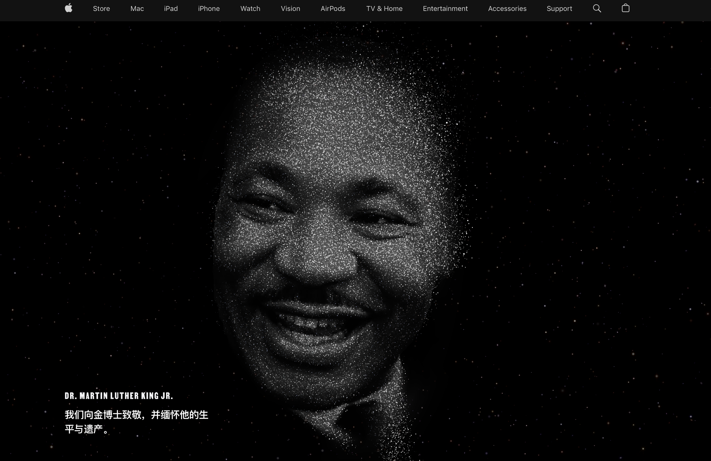 查询了苹果官网才知道,这次停更是因为在今天开启了「马丁·路德·金纪念日」,部分地区的苹果官网首页已经变成了马丁·路德·金的头像。苹果 CEO 库克也在社交媒体上表示,今天是一个沉重的缅怀日,苹果将停止大部分的新闻和更新,只会推送重要的消息通知。
