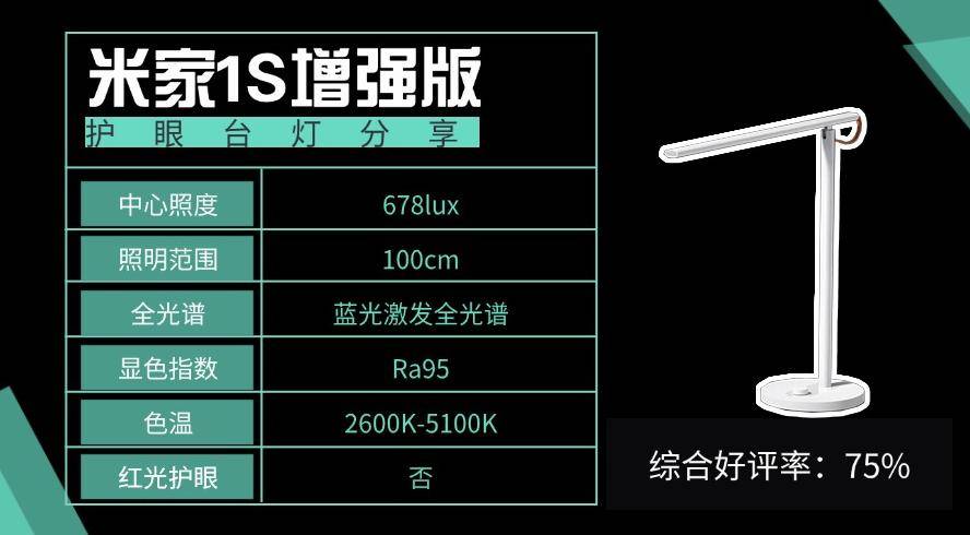 哪个牌子的护眼灯比较好?米家1S增强版护眼台灯的照明范围达到国标A级,但未能达到AA级,相对来说没有很好,主要受光源面积限制,更适合小尺寸书桌使用,否则桌面边缘可能出现明暗不均,长时间阅读可能增加眼睛负担。作为米家生态链产品,它支持通过米家App智能控制亮度和模式,虽然护眼效果没有很好,但是相对来说会适合家里米家系统一体化的消费者。
