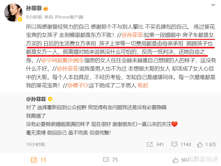 离婚大战落下帷幕,孙菲菲终于挣脱了这段长期消耗她的关系。她坦言:“现在很好,虽不完美,但很完整!”