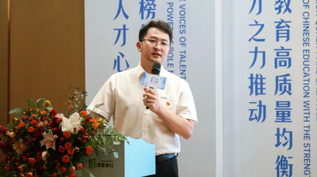 “桃李先进人才”获奖代表、海亮高级中学高中数学教练周毅博从自身经历出发,分享了他在提升教学能力,让学生养成自主学习习惯,为学生提供精神力量等方面的经验。他还展示了与今年考上北大的学生的聊天记录,感慨他作为教师所感受到的“传承”的幸福感。