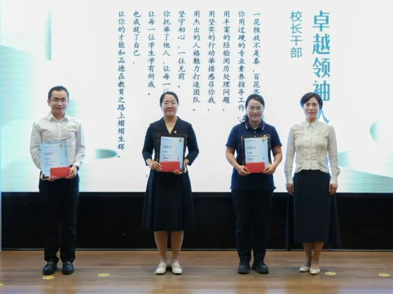 为表彰这些优秀人才作出的非凡贡献,大会颁发了“桃李先进”“赋能先锋”“卓越领袖”“创新领航”四大人才奖项,获奖代表周毅博、乔雪玲、邵嶷、杭承政依次发言,分享他们的获奖感悟和在海亮教育的成长经验,以此激励更多同行人追求卓越,投身于教育事业,为学生成长和教育发展贡献力量。