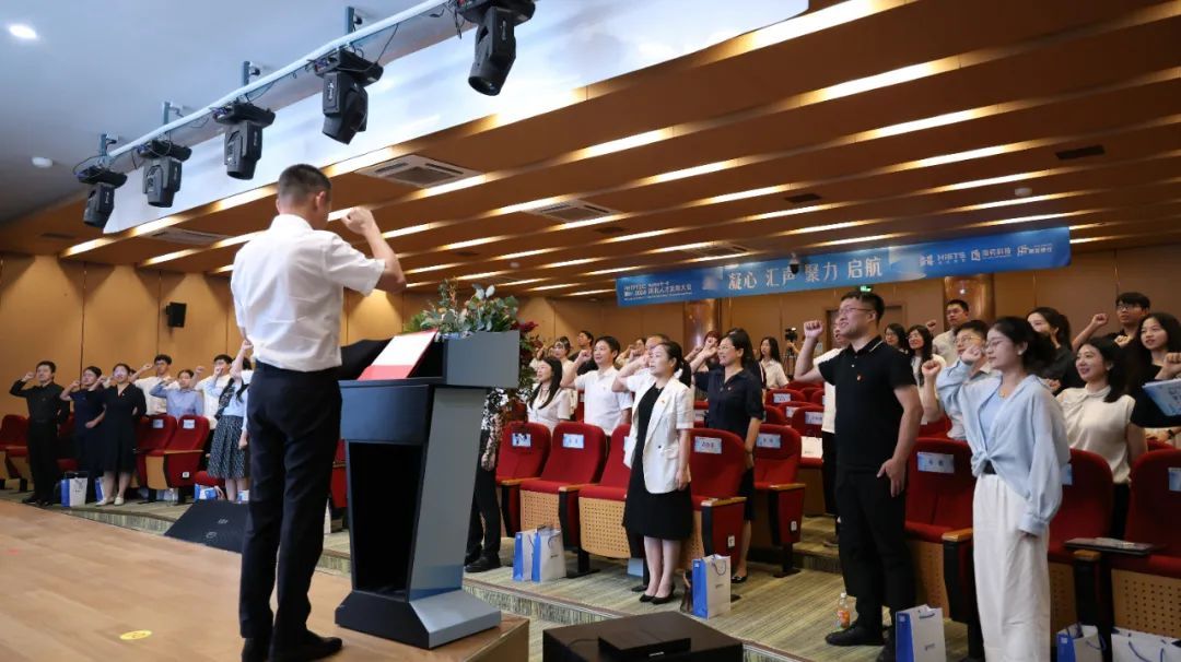 大会尾声,海亮教育科技服务集团副总裁黄冠带领全体人员宣读誓词,庄严承诺“将使命在肩,将勇担人才强国使命,矢志不渝助力县域教育振兴,砥砺前行建设教育质量高地,为民族教育振兴贡献海亮力量!”
