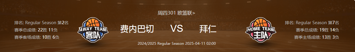 周四301欧篮联费内巴切VS拜仁慕尼黑