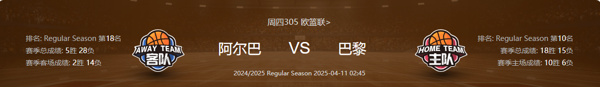 主队巴黎在常规赛表现较为稳定,场均得分和失分相差不大,整体实力较为均衡。而客队阿尔巴柏林的表现相对较差,场均得分较低,失分较高,篮板和助攻数也略逊一筹。巴黎在主场有一定的优势,而阿尔巴柏林在近期的战绩不佳,状态较差。