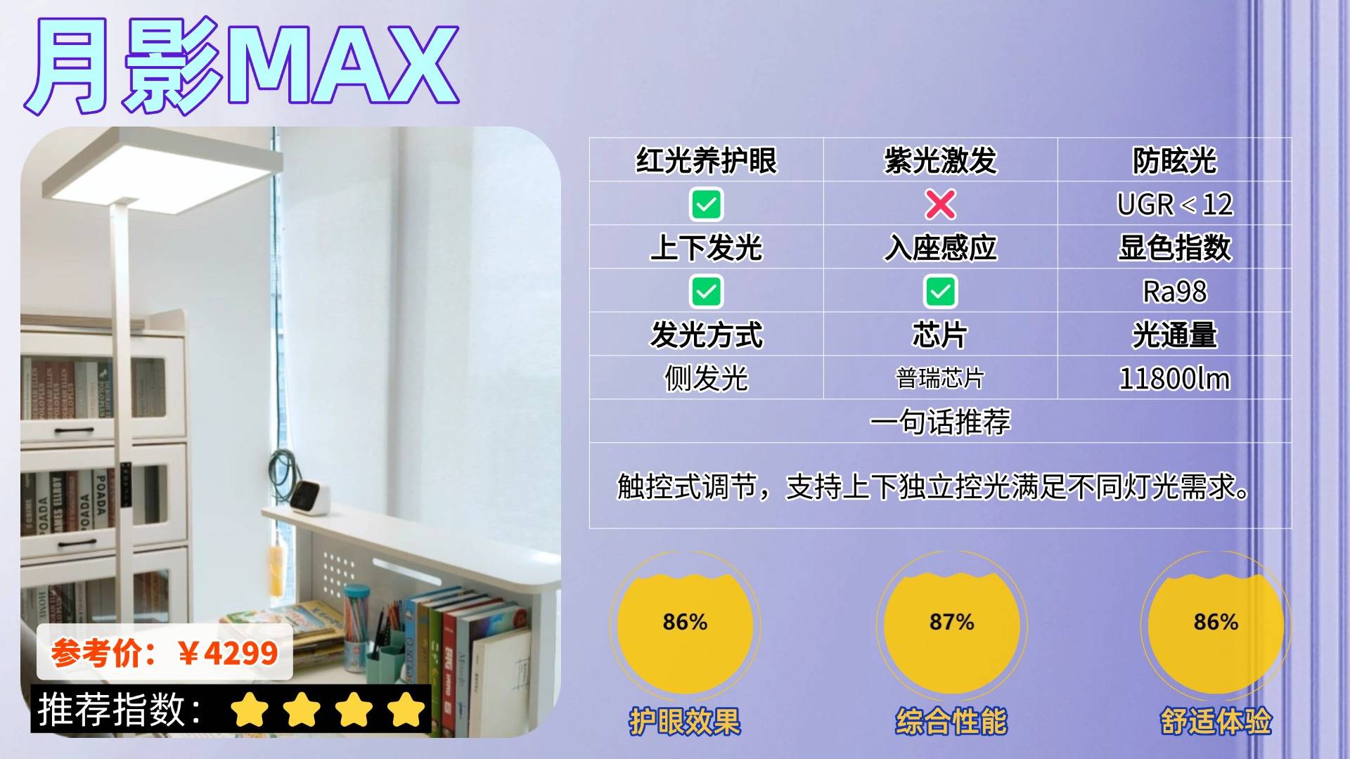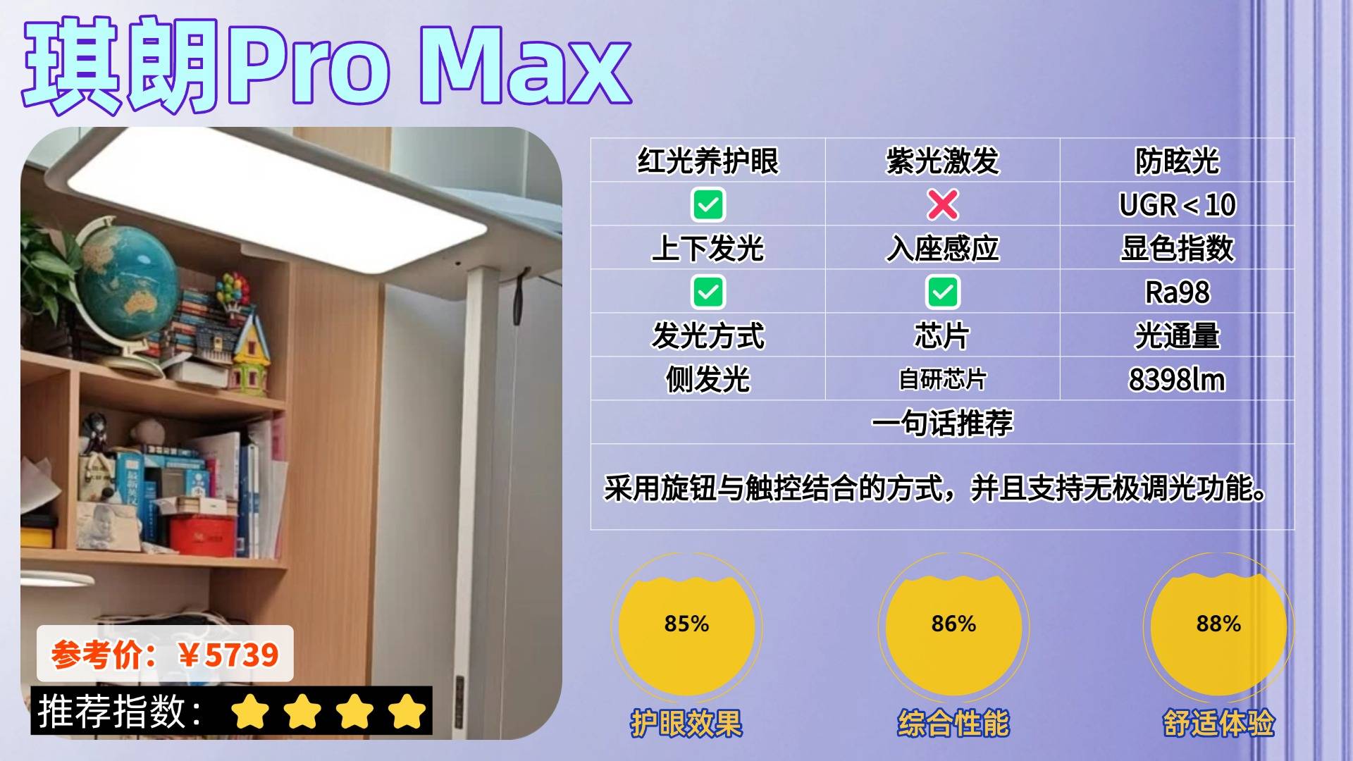 推荐理由:主打“医学养护眼”的特性,是唯一做到降低98%近视风险的护眼灯款式。