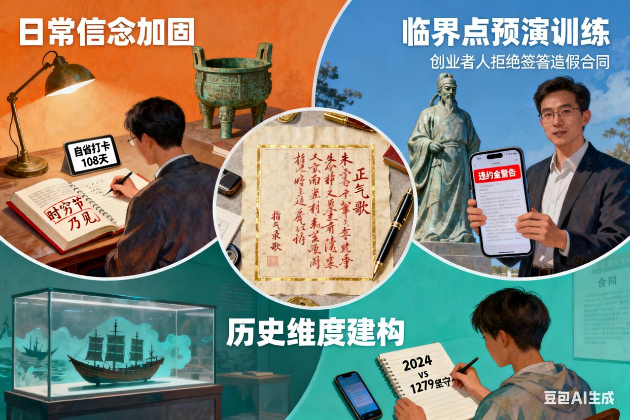 这场修炼的本质,是将文天祥的丹心精神转化为现代人的立身之本。当你能在流量诱惑中坚守内容品质,在集体沉默时发出理性声音,便是对“留取丹心”的当代践行——不是重复他的悲剧,而是继承他那种“风檐展书读,古道照颜色”的生命气象。