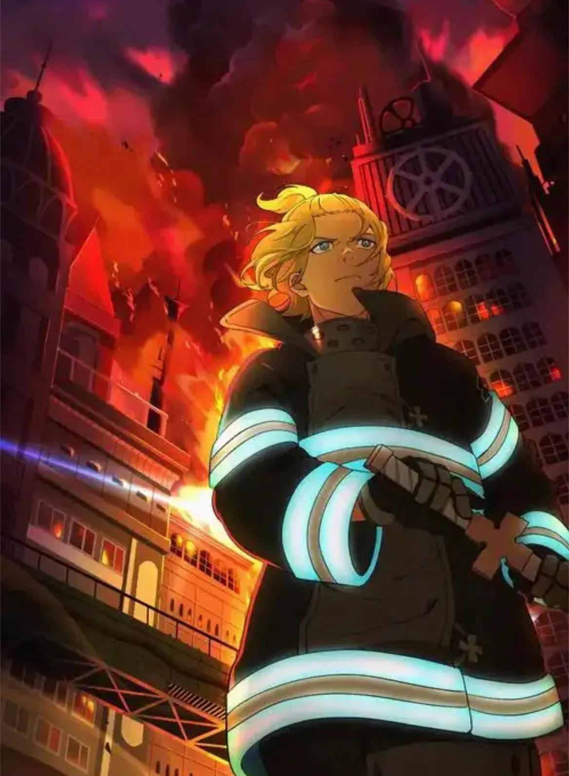 这部番的世界观设定,从一开始就跳出了传统热血番的框架。在一个人类会莫名自燃变成“焰人”的世界,火焰不再只是温暖的象征,更是吞噬一切的灾难。而特殊消防队的队员们,不是拿着水枪的普通消防员,而是能操控火焰、以火灭火的勇者,他们的使命不仅是扑灭烈焰,还要解开人体自燃的谜团,拯救那些被火焰吞噬的灵魂。