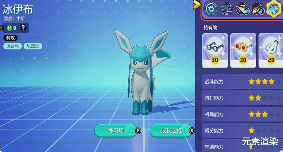 冰伊布作为远程特攻型宝可梦,它初期的抗击打能力是较为不足的,但由于基础伤害本身就不错,所以即使初期它的杀伤性依旧不容小觑。冰布的机动能力为三星,中规中矩一些,抗击打能力较弱,辅助能力和得分能力也都较弱,所以主观来说它完全就是个高爆发型的特攻战士。
