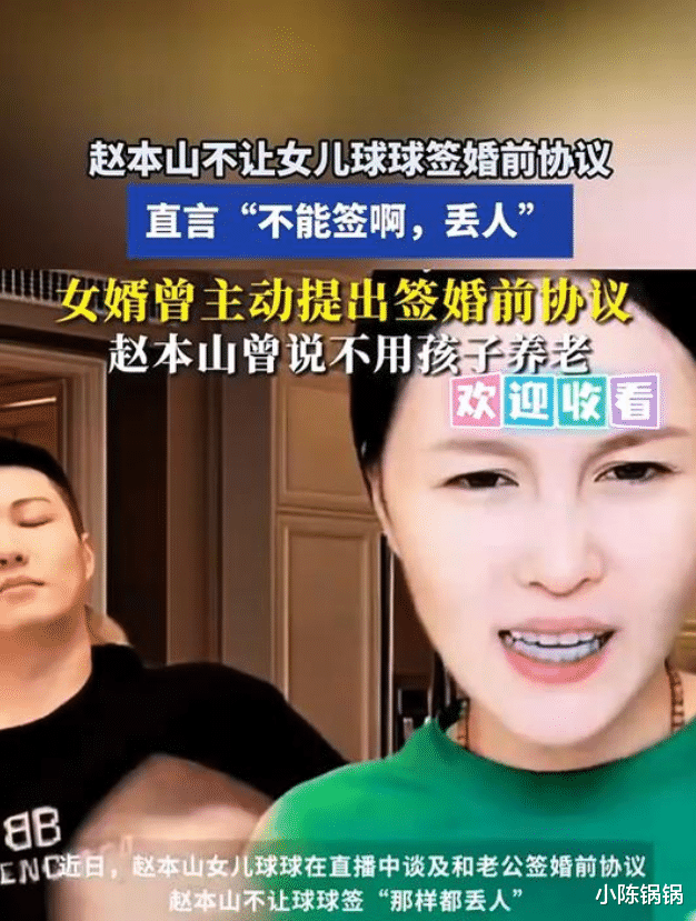 在另一场直播中,球球透露曾想与老公签订婚前协议,但遭到赵本山的坚决反对。赵本山认为签协议“丢人”,并直言“签完还过个屁啊!”。