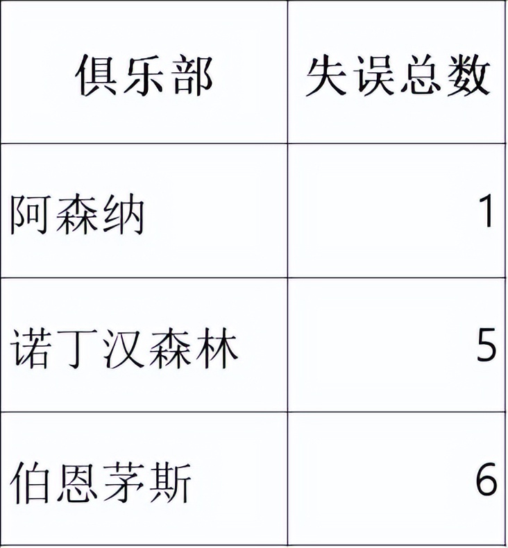 目前的英超领头羊在防守端极少犯错。2025-26赛季至今,阿森纳仅因“高位球权丢失”让对手获得1次射门机会,为英超最低(联赛平均每队6次)。同时,他们也很少因注意力不集中导致致命失误。