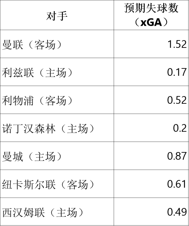 自首轮客场对阵曼联时展现出罕见的控球失稳后,枪手的防守强度已大幅提升。在客场挑战利物浦、纽卡斯尔联等硬仗中,他们展现出极强的“抗破局”能力;近6场英超比赛,每场的预期失球数(xG)均不足1个。