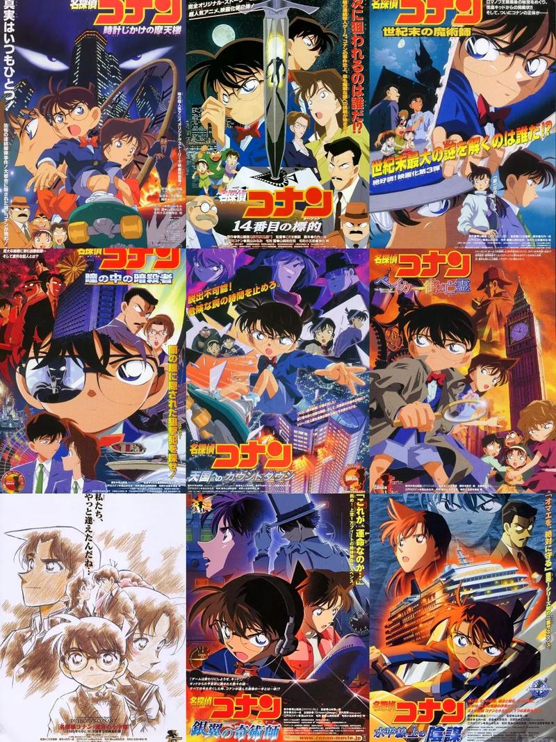 分别为1997年的《引爆摩天楼》,1998年的《第十四个目标》,1999年的《世纪末的魔术师》,2000年的《瞳孔中的暗杀者》,2001年的《通往天国的倒计时》,2002年的《贝克街的亡灵》,2003年的《迷宫的十字路口》,2004年的《银翼的魔术师》,2005年的《水平线上的阴谋》,2006年的《侦探们的镇魂歌》,2007年的《绀碧之棺》,2008年的《战栗的乐谱》,2009年的《漆黑的追踪者》,2010年的《天空的遇难船》,2011年的《沉默的15分钟》,2012年的《第11个前锋》,2013年的《绝海的侦探》,2018年的《异次元的狙击手》,2019年的《业火的向日葵》,2020年的《纯黑的噩梦》,2021年的《唐红的恋歌》,2022年的《零的执行人》。