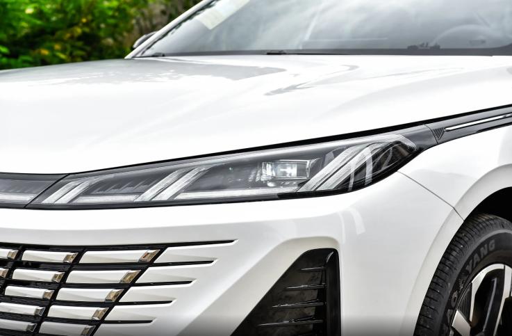 回归产品体验上来说,即便预算吃紧,选择入门款,也不会太委屈。就以优惠后预售价7.49万元的劲享型为例,虽是低配版本,但颜值依旧在线。前脸采用了当下新能源车惯用的点阵式元素装饰中网,星环式LED贯穿灯带在非点亮的状态下也有较为精致通透的立体感,与封闭式格栅相辅相成,拉升了前脸的视觉层次感。此外,新车在灯光配置上不区分“高低配”,全系标配前后贯穿式LED数字瀑布光柱和可发光车标,这也就意味着,无论是买高配还是低配,体面都是一样的,对手上预算有限的人群比较友好。