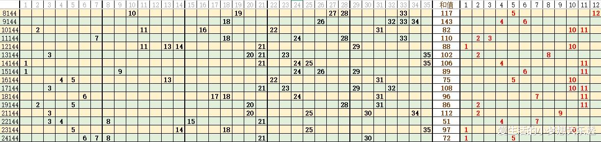 31 作为凤尾开出各 4 次,35 作为凤尾开出各 3 次,29 33 34 作为凤尾开出各 2 次,21 30 32作为凤尾出现各 1 次。凤尾开出0路4次,1路6次,2路6次。三路凤尾开出0路开出最少,1路和2路开出较为平均。0路开出4次凤尾,其中33开出2次,最小凤尾21和30各开出1次。1路开出6次凤尾,其中31开出4次是热码凤尾,34开出2次。2路开出6次凤尾,其中35开出3次,29开出2次,32开出1次。