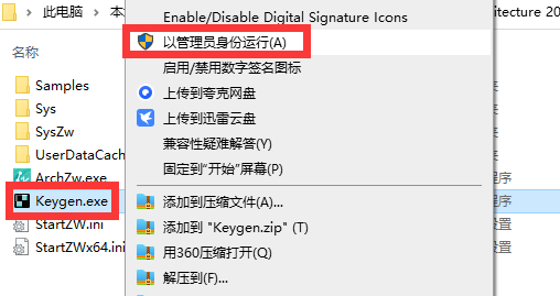10、点击刚刚粘贴的【Keygen】文件,鼠标右键,选择【以管理员身份运行】。