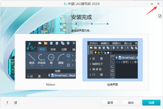 22、去电脑桌面重新打开【中望CAD建筑版2024】软件,进入绘图界面,即可开始使用。