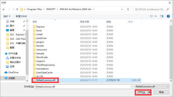 13、去安装目录里面找到并选中【flxNetCommon.dll】文件,然后点击【打开】。