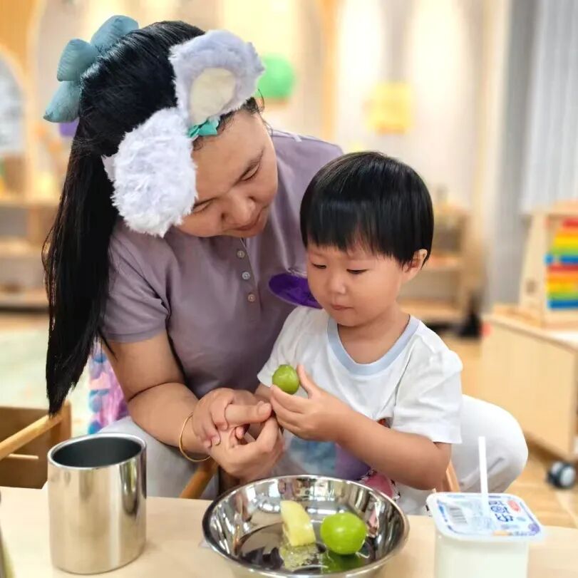 老师们见证着这些细微却了不起的成长:开学时还需要用吸管杯的孩子,现在能稳稳端着敞口杯喝水;第一次尝试咬下一整块苹果时,老师情不自禁的掌声响起,孩子们也跟着学会了为同伴竖起大拇指;叠衣服时那份认真的模样,剥大蒜时小心翼翼又充满好奇的表情……生活的技能在日常中熟练,生命的自信在成功中建立。