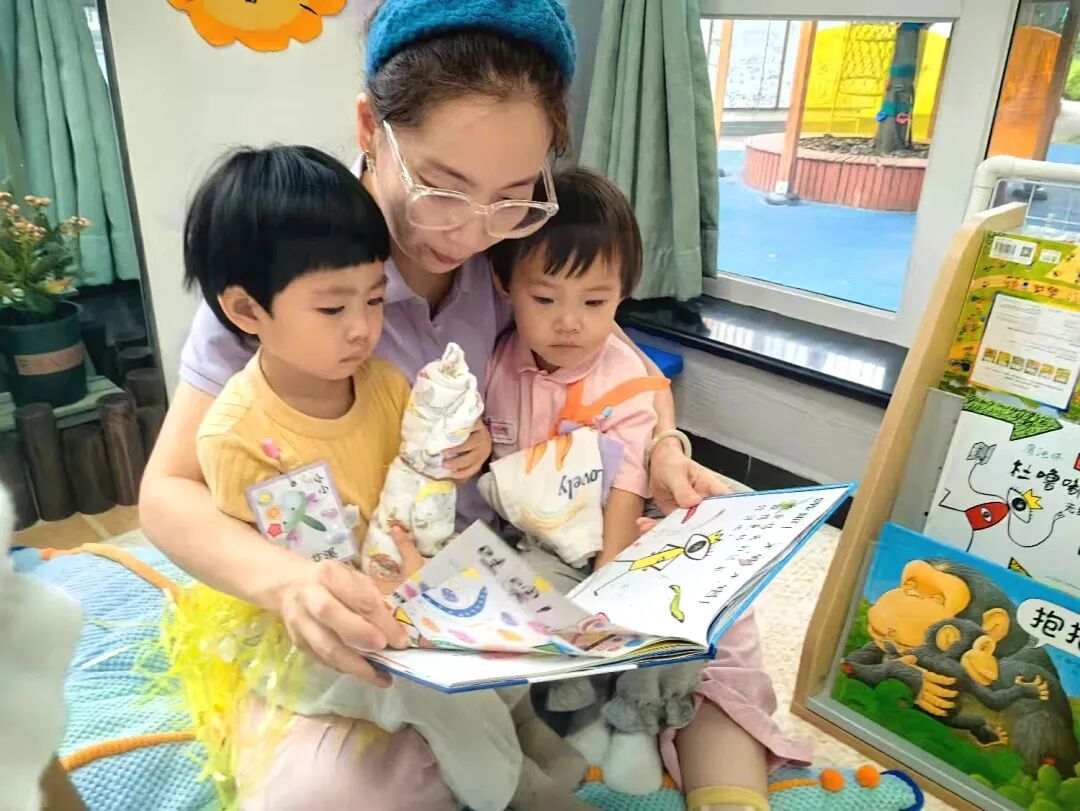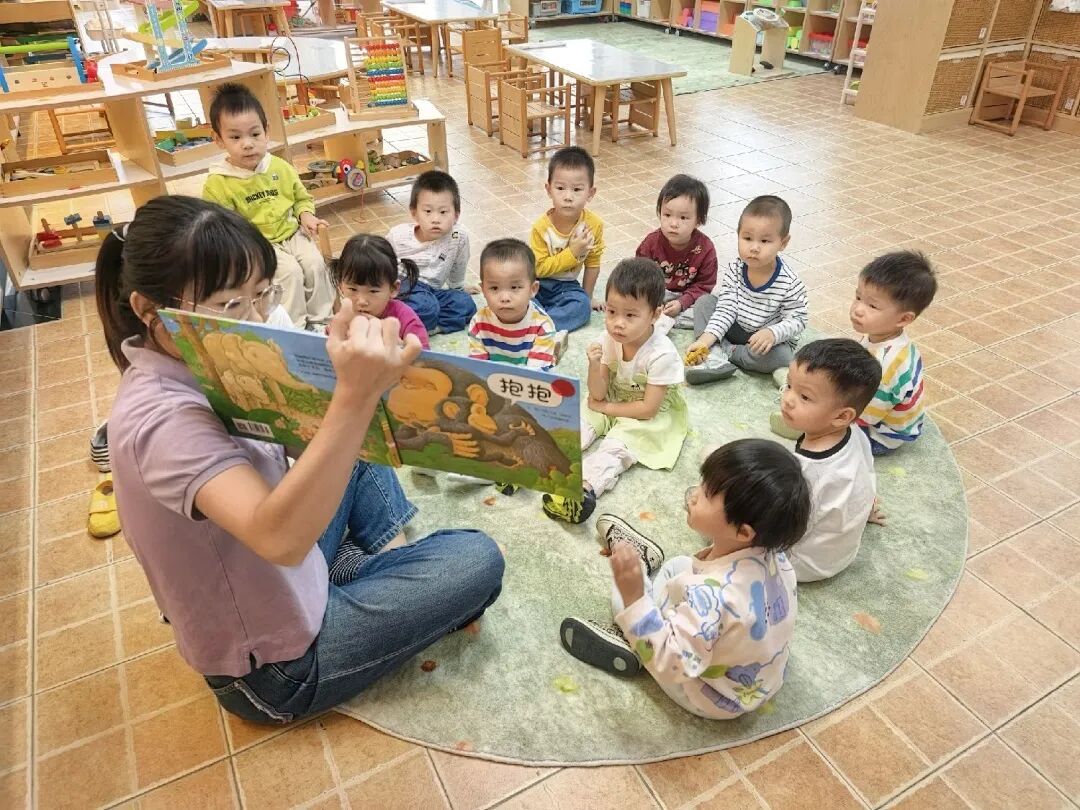 清晨,地毯上的故事时间开始了。老师总会捧着一本色彩鲜亮的绘本坐下,温柔的声音慢慢响起:“今天来讲小动物量身高的故事哦……”话音刚落,附近的孩子就先围了过来——有的躺在老师怀里,有的盘腿坐在老师脚边,还有的把小脚丫轻轻搭在老师腿上,原本在桌边搭积木的孩子,也会停下手中的动作,循着声音小步凑过来,悄悄坐下,眼睛紧紧盯着绘本上的图画,生怕错过故事里的小情节。没有一句“过来坐好”的提醒,因为这不是被要求的参与,而是被美好吸引的自然融入。