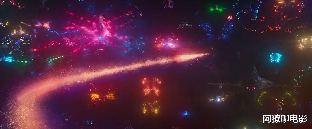 1.《银河护卫队2》(2017)勇度葬礼烟花秀重新定义了太空歌剧的悲伤语法。当掠夺者舰队用万枚导弹将遗体化为星尘时,爆炸的声波在真空中寂灭,却让《Father and Son》的旋律震耳欲聋。这是一场用暴力军火进行的诗意超度。