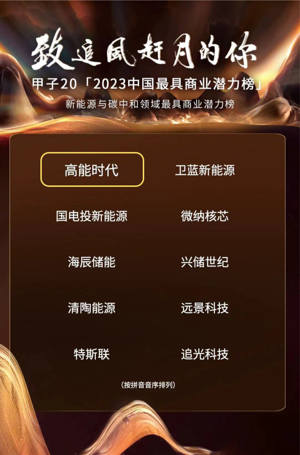 11月30日-12月1日,由科技产业智库「甲子光年」主办的“2023甲子引力年终盛典”在北京举行。活动期间,“2023中国最具商业潜力榜”、“2023中国数字经济榜”等多个榜单揭晓。凭借在硫化物全固态电池领域的领先技术实力,高能时代荣登“2023中国新能源与碳中和领域最具商业潜力榜”。