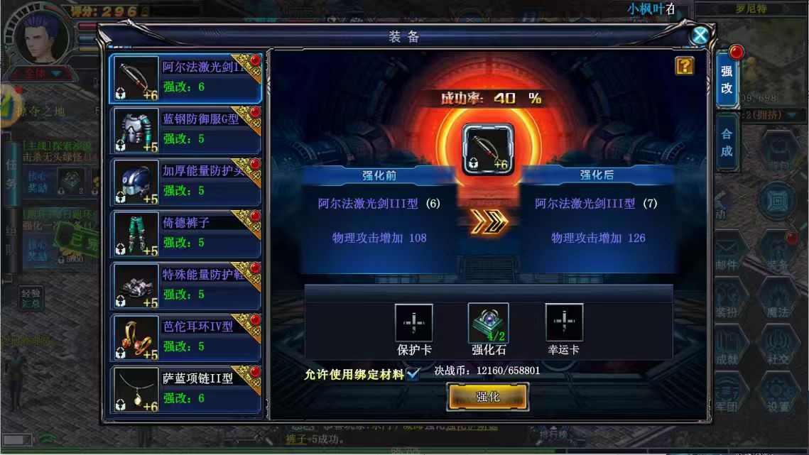 别在 + 1 到 + 5 的时候用!这阶段强化必成功,浪费道具。等到 + 6 上 + 7、+8 上 + 9 的时候用,尤其是 + 8 上 + 9,不带幸运符失败率 40%,失败还会掉回 + 6,我上赛季就吃过这亏,白砸 15 个强化石,后来带幸运符一次成。