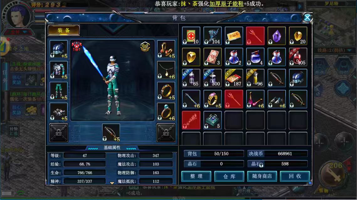 初始给的 20 个强化石,全砸主武器!格斗家砸 “青铜拳套”,魔法师砸 “橡木法杖”,+5 后武器伤害能翻 1.5 倍,砍新手村的 “异化甲虫” 一刀一个,比先强化衣服快太多。衣服前期用任务给的白装就行,等 30 级换蓝装再强化。