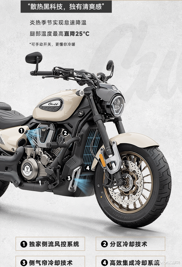 而在缓解巡航党“烫腿”难题,无极独创的散热气帘技术在怠速状态下腿部温度可比同级低25°C,并且支持手动开关功能,让用户可以享受“冬暖夏凉”的骑行体验。
