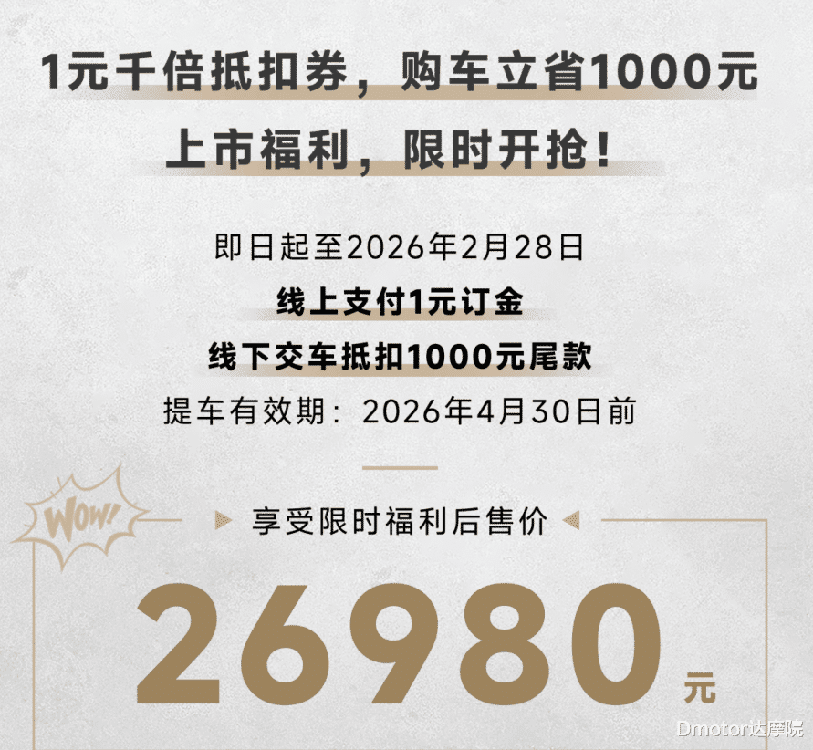 值得一提的是,从即日起至2月28日,购买无极CU625 AMT的小伙伴可以获得1元抵扣1000元的新车上市福利,26980元即可到手。