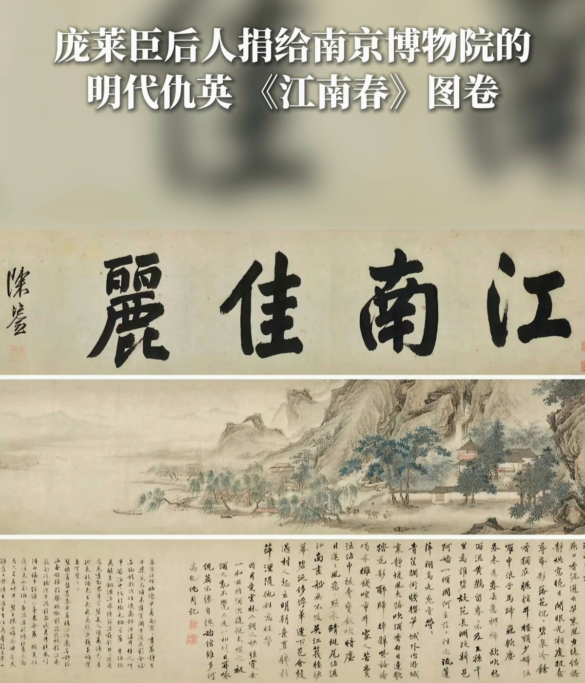 近几年庞来臣的后人参观展览时发现捐赠清单上的文物似乎不完整,他们提出查看藏品的要求,南京博物院因不是直接接收捐赠的一方拒绝了该请求。随后后人向法院提起诉讼,法院最终裁定博物馆应配合进行清点工作。经核查,确实有五幅画作下落不明。今年5月一幅署款为仇英的《江南春》出现在北京一家知名拍卖行,起拍价高达八千八百万元