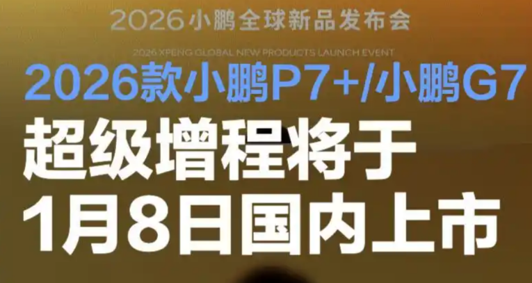 小鹏一向是新势力中的积极分子,一季度新车混战,其目前放出的消息也比较振奋人心。根据相关信息,新款小鹏P7+和G7将于1月8日在中国正式上市,1月9日正式在欧洲上市。据了解,两款新车将搭载小鹏第二代VLA、图灵AI芯片,拥有2250TOPS有效算力。其中,2026款小鹏P7+整体设计基本延续在售车型,主要变化在于座舱精致感和舒适性方面的升级。新车包含了104项的体验升级和36%的一级总成升级,同时提供纯电和增程双动力,增程版综合续航里程将达到1550公里,纯电版续航里程为725公里,综合产品力有大幅提升。