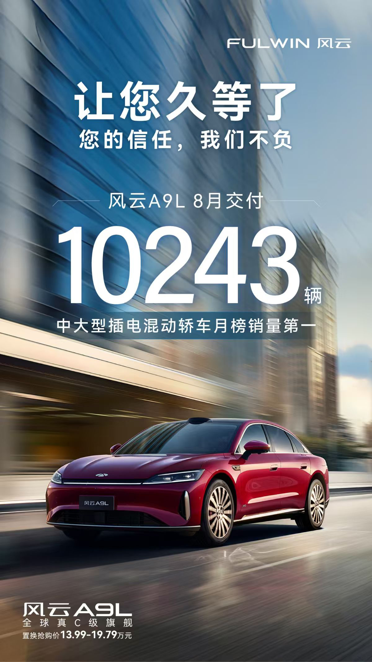 这势头确实有点吓人——风云A9L在8月直接干到10243辆,不仅稳居中大型插电混动轿车销冠,更冲进“全能源中大型轿车”总榜前三,把一众燃油老将甩在身后,甚至在新势力车型榜单中也挤进前八,堪称一次“跨维度打击”。
