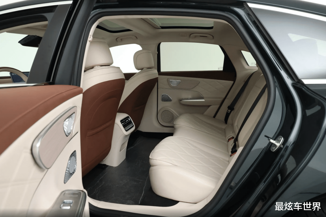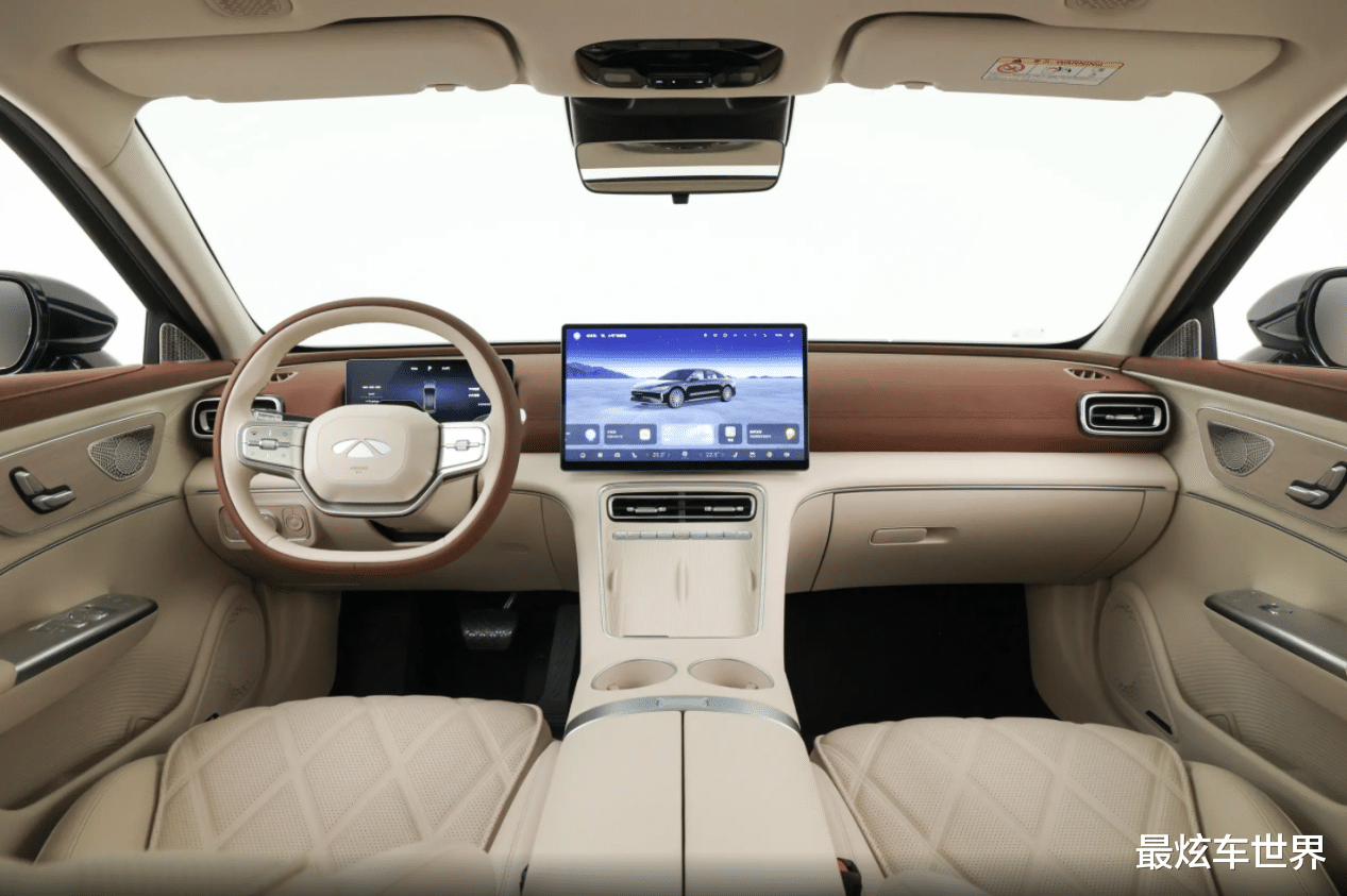 内饰方面,奇瑞风云A9L同样是以豪华、成熟的风格与大家见面,特别是实拍图中的“暮秋暖阳”配色,搭配上菱形格打孔的座椅,以及大量的镀铬元素,这些都可以提高车内的档次感。而且可以看到,风云A9L还在中控屏下方提供了一排物理按键,在追求科技感和档次感的同时,也没有忽略掉实用性,再加上全系标配、带有风冷散热功能的50W手机无线快充,以及前排座椅加热,同样可以给车主带来不错的出行体验。