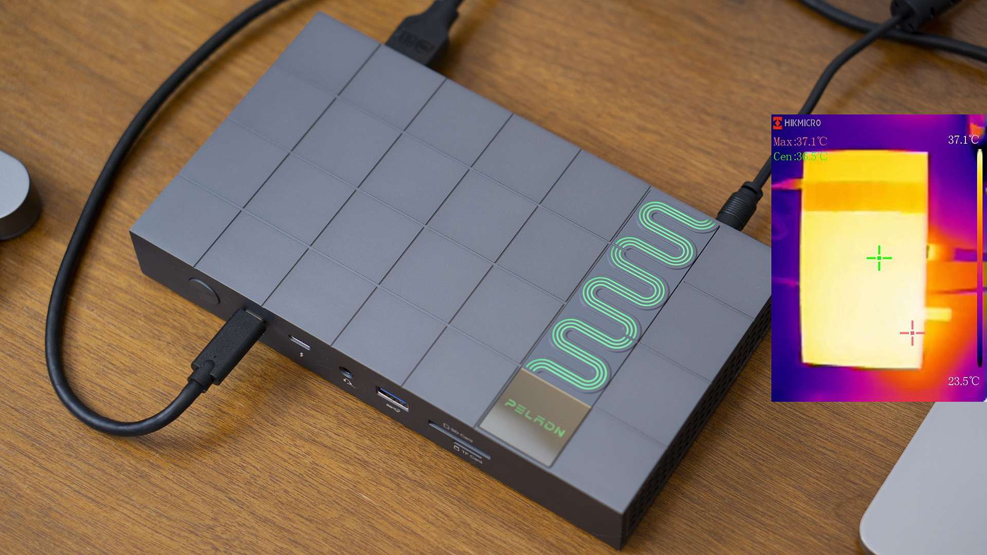 我们本以为这款有着雷电5接口的拓展坞会因散热而存在噪音(不少USB4.0的硬盘盒,风扇都是嗡嗡地响),但事实证明我们多虑了。除了环境噪音,仪器检测不到拓展坞运行的声音。在使用的这几天中,它都一直处在静默的状态,要不是有闪烁的RGB灯提醒,想必您也会和我们一样忘记它的存在。