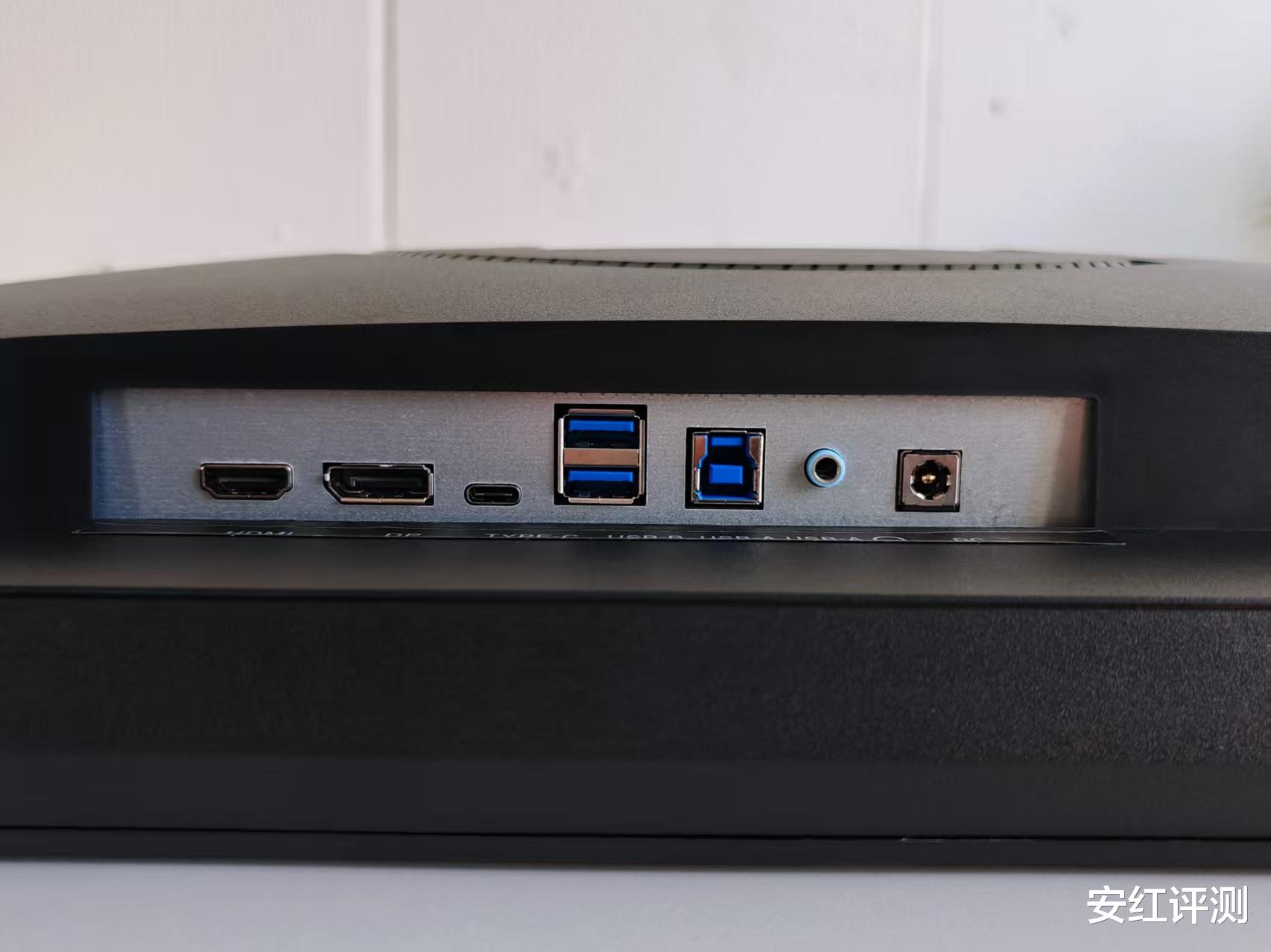 在传输和接口方面,此款显示器拥有HDMI、DP、Type-C、USB-A、HUB和Audio音频接口。其中,HDMI版本为2.1,支持高速率数据传输,连接PS5或Xbox Series X,可以给玩家带来4K@120Hz的高清高刷画面。而USB -A则可以用来扩展键盘和鼠标等无线设备。丰富的接口完全可以满足日常使用需求。