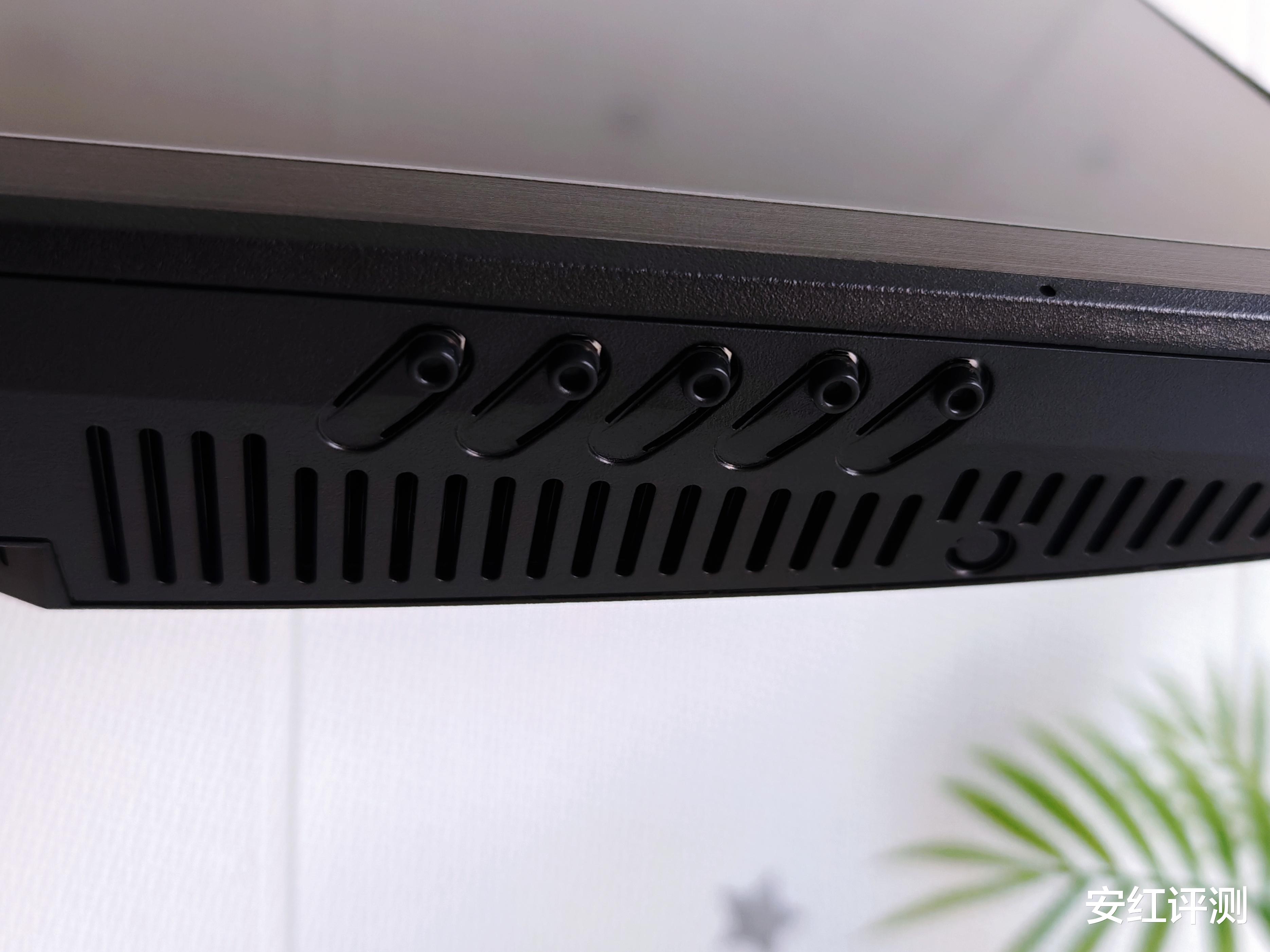 在显示器下方,配备了电源指示灯和五颗实体按键,这五颗按键分别对应不同的调节功能,比起五向OSD摇杆设计,这样操控更符合我的调节习惯,使用起来舒适快捷。