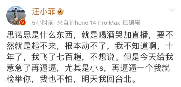 汪小菲“疯”了一晚上,摆出来的劲头大有收复宝岛的意思,但又一次变成“口嗨”。坐等看戏的网友们,可以先歇一歇了。都说“今日留一物,他日好相见”。即便汪小菲昨天连发23条动态,炮轰S家。