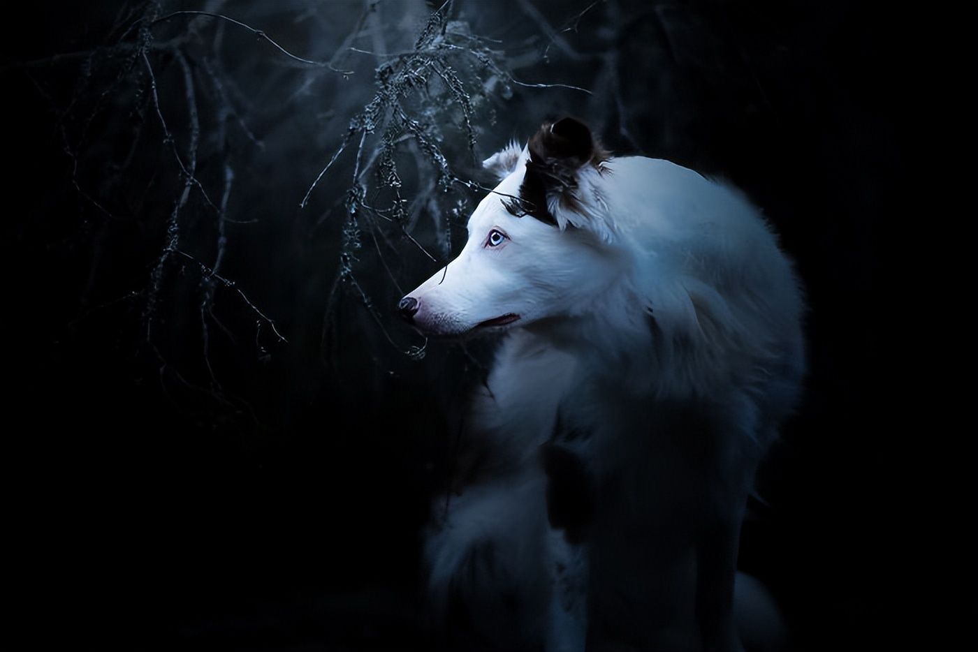 在这个系列中,她最喜欢的照片之一是她的边境牧羊犬Cirilla。Cirilla把爪子放在一个南瓜上,身上覆盖着蜘蛛网,并低下头,展现出一种强烈的表情。她原本想让Cirilla摆出不同的姿势,但Cirilla坚持把爪子举在空中,效果非常好,显示了它擅长自己建议姿势。另一个她喜欢的照片是她年轻的边境牧羊犬Zireael,被红色边缘光照亮,完美捕捉了它迷人、可爱又带点顽皮的个性。