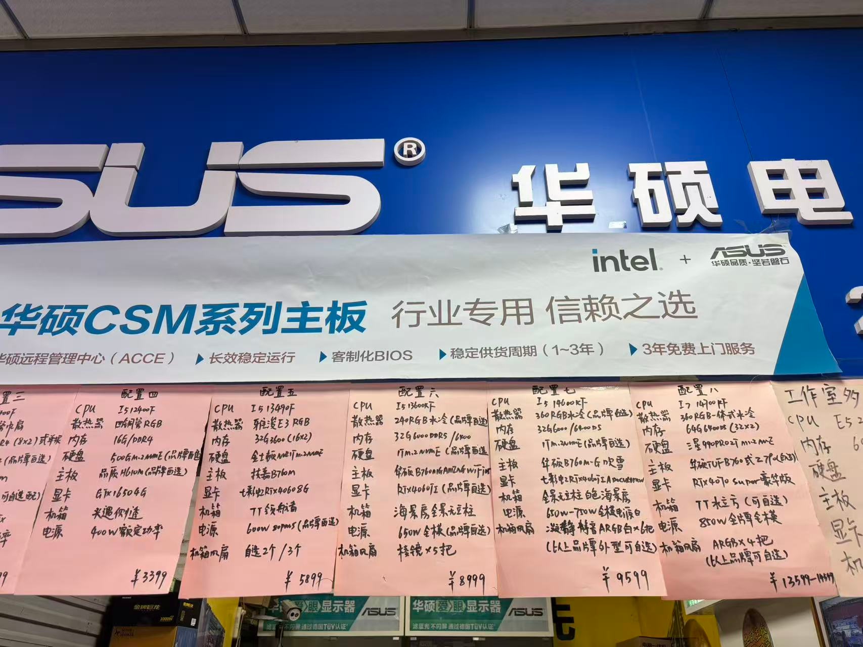 在电脑城的二楼,有摊位更小、价格更实惠的电脑组装小铺。多位做电脑组装的商家告诉记者,自己门口挂出的配置报价单,现在至少要加一千元,否则就是亏本。