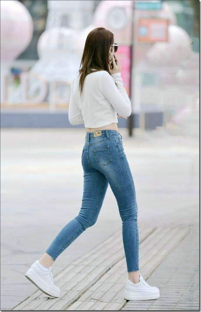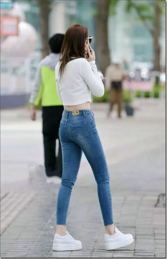 街拍时尚紧身牛仔裤美女,保持优雅端庄和自信,同时还要有自然随性的个性性格,很适合在外出游玩的时候穿。