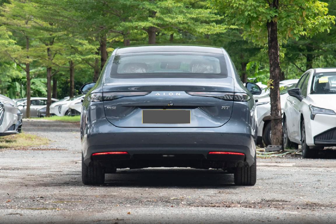 而从车身侧面来看,AION RT的车身十分修长,整车的长宽高数据来到了4865/1875/1520mm,轴距来到了2775mm,在紧凑型轿车市场还是有一定的优势。而在设计方面,AION RT的隐藏式门把手为单侧翘起的开门方式,同时车窗周围的装饰条也都以黑色为主,并没有用镀铬饰条来提升车侧的档次感。