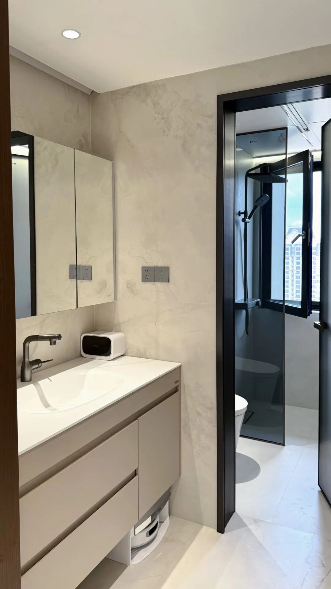 分区清晰:洗手台、马桶、淋浴区互不干扰