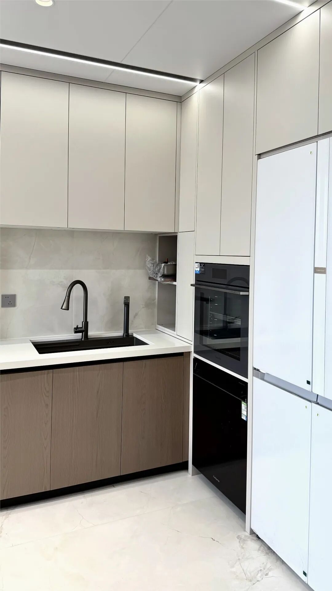 浅色系橱柜简洁大方,收纳空间藏得巧妙