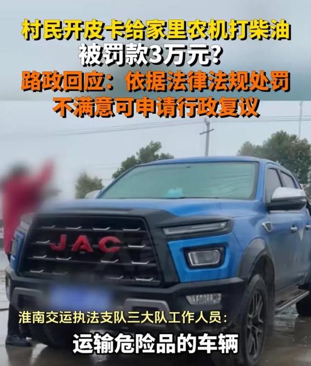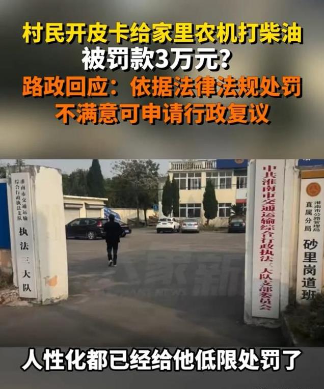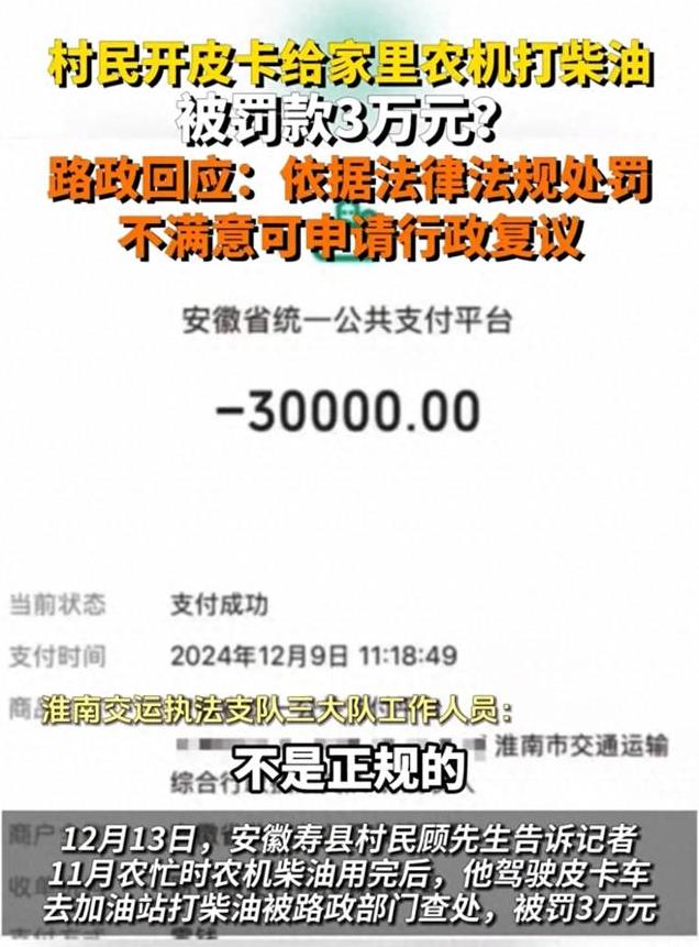 近日,安徽寿县一村民用皮卡车拉柴油回家给农机加油被路政部门查处并罚款3万元的事情在网络上引发了巨大的争议。