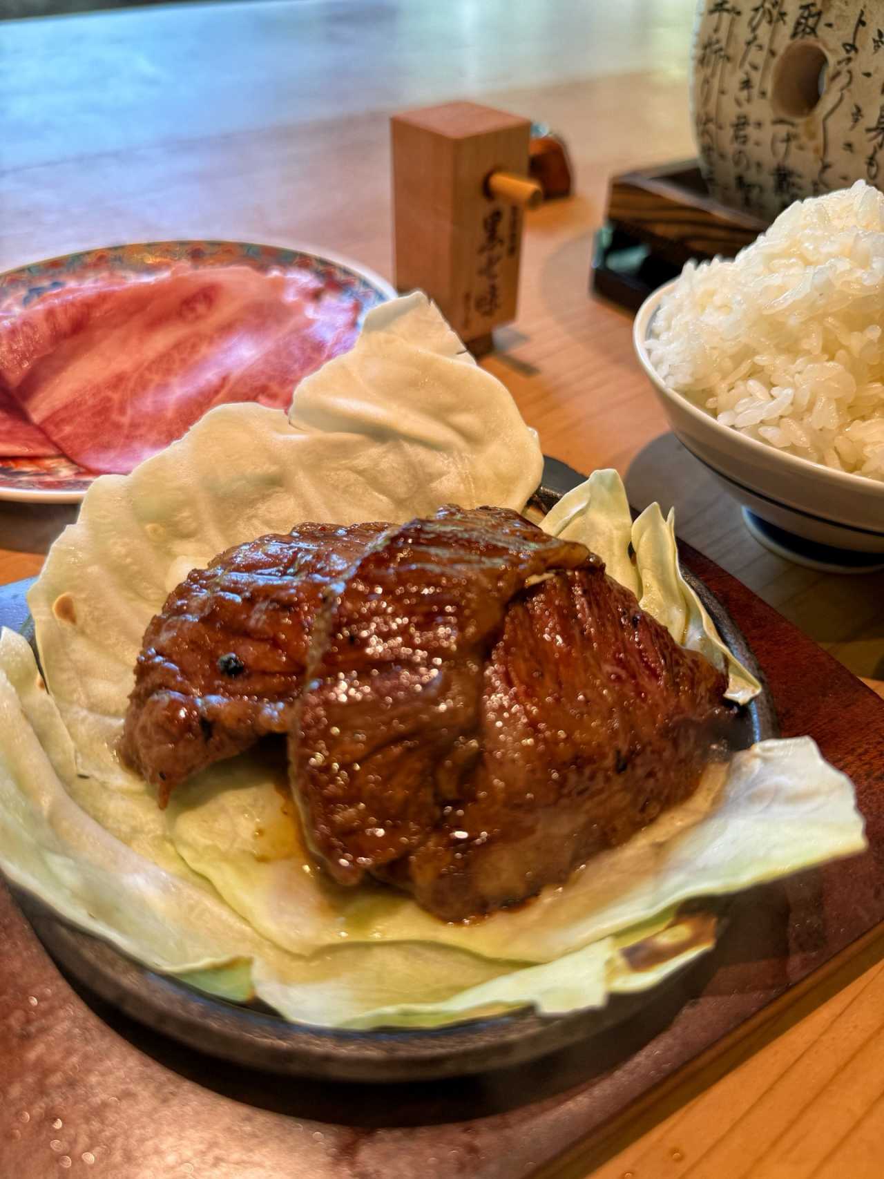 只要2500日元,每一片和牛雪花分布均匀,在甜口的寿喜锅里稍微烫一下,滚上蛋液,入口即化鲜嫩无穷,强推