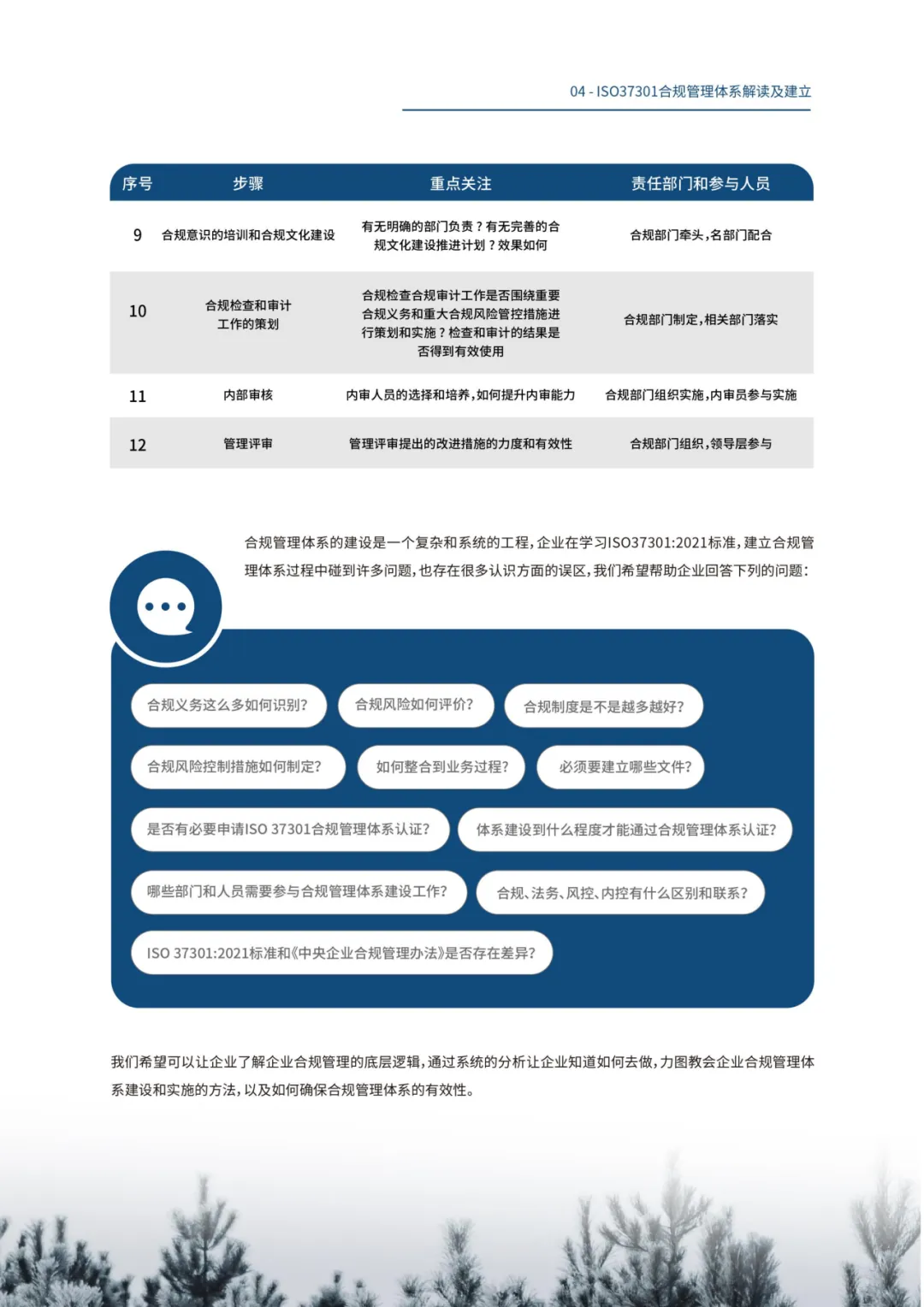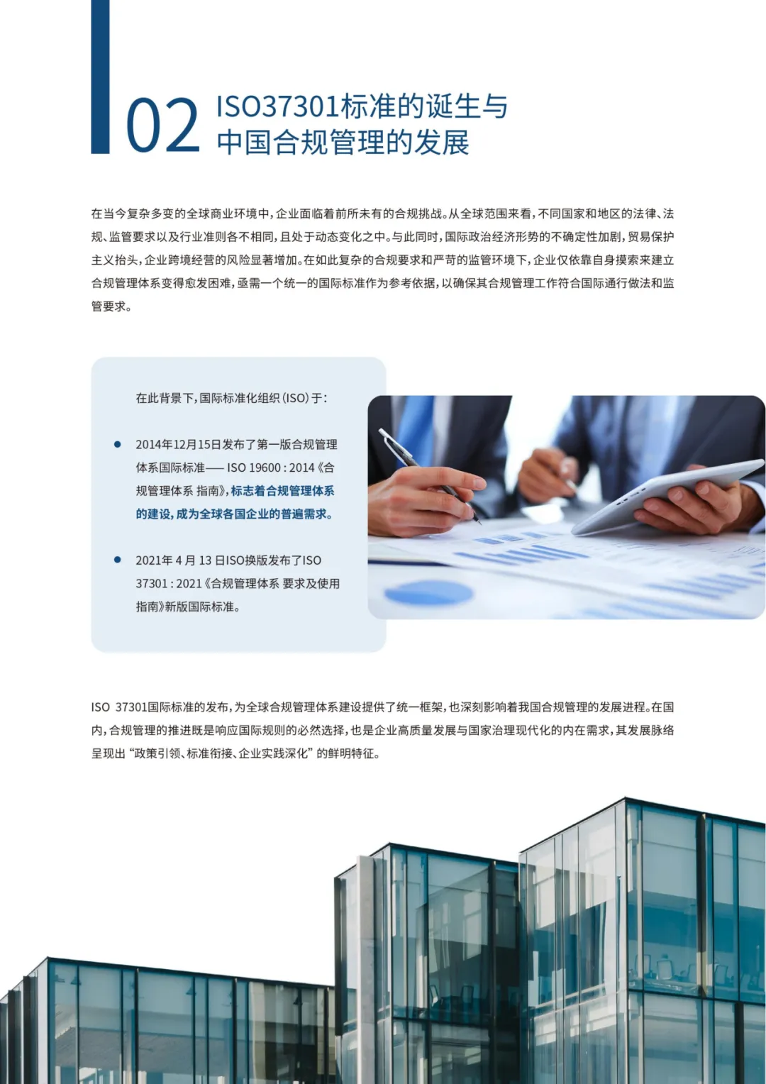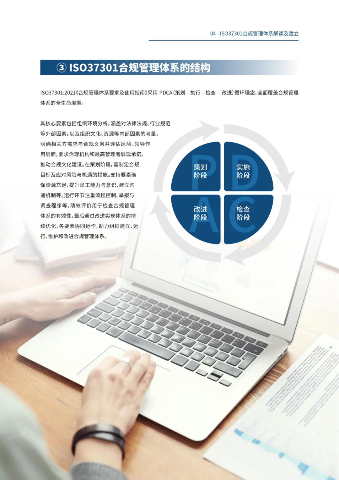 ISO37301,企业合规管理的国际通用语言ISO37301前身是2014年发布的ISO19600《合规管理体系指南》,2021年的换版ISO37301:2021《合规管理体系 要求及使用指南》作为一项国际标准,适用于全球任何类型、规模、性质和行业的组织。企业按ISO 37301标准搭建合规管理体系,不仅能防范风险、优化内部管理、提高国际竞争力,还能帮助企业适应不断变化的法律法规和监管要求,确保企业的可持续发展。企业可通过第三方认证机构证明其合规体系的有效性与符合性。