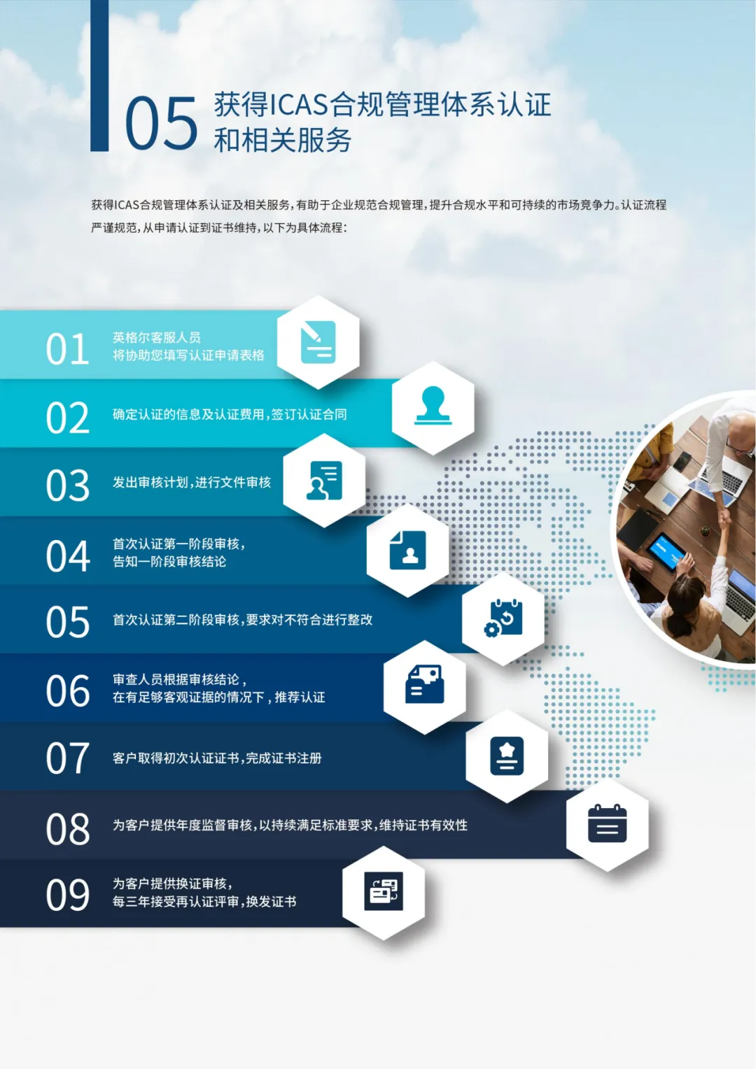 ICAS英格尔认证成立于2000年,总部位于中国上海,拥有中国(CNAS)、英国(UKAS)和美国(ANAB)多重认可资质;认证规模居全国认证机构前列,创新板块居全国前十(来自CCAA发布的《2023认证机构发展报告》),在合规、反贿赂、资产管理、税务管理、绿色转型、ESG和可持续发展等领域业务卓著。公司牵头起草《企业税务管理体系 要求》、《环境、社会与治理(ESG)管理体系要求》等标准,获评AAA级低碳服务能力,取得AA1000审验资质,在助力中国企业实现高质量发展和打破国际贸易技术壁垒、打造国内国际竞争力中发挥关键作用。