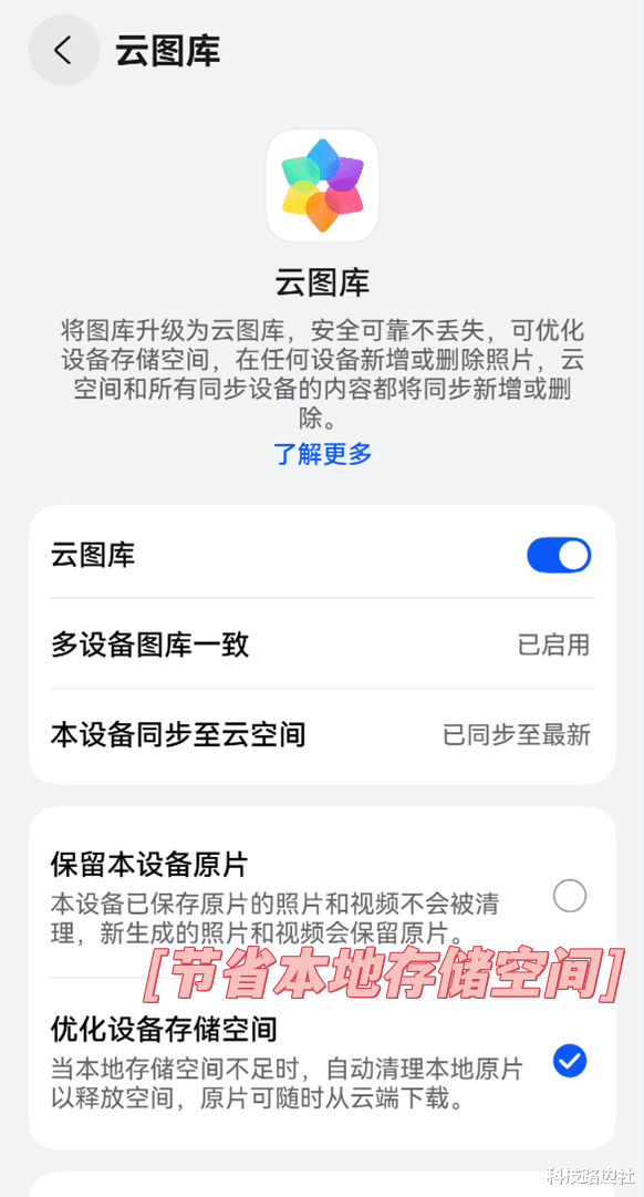 这不仅仅是为了存储照片,更是为了打通一套“拍照-修图-发布”的极速工作流。前几天我俩就去公园提前拍了一组“入秋”主题的照片,我用手机负责疯狂按快门,而华为云空间的“云图库”功能,则在后台默默地将所有高清原图自动同步到了云端。同时,我开启了“优化设备存储空间”功能,不常用的图片、视频本地只保留预览图。这样就能节省更多本次存储空间,给女朋友拍更多照片了!