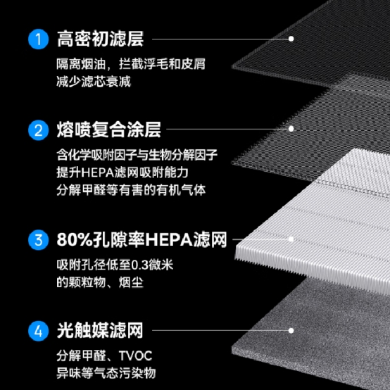 面对烟味,仅靠单层活性炭滤网往往很快饱和,效果会大打折扣。选择多层组合滤网的机型,更能长期稳定去除颗粒物和气味分子,减少反复残留。
